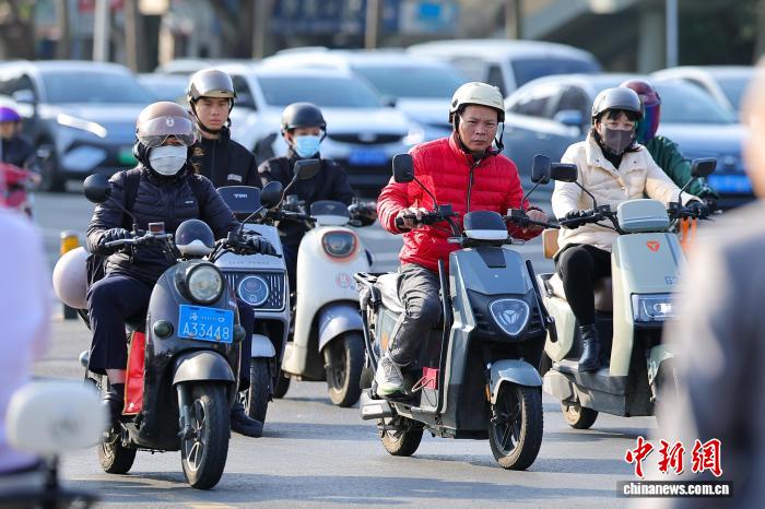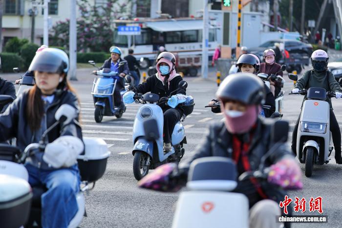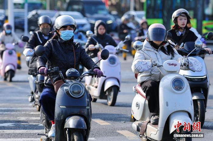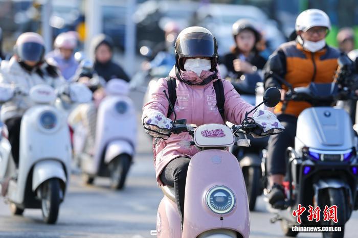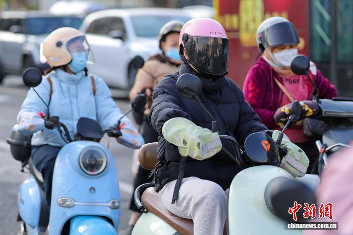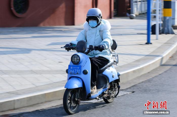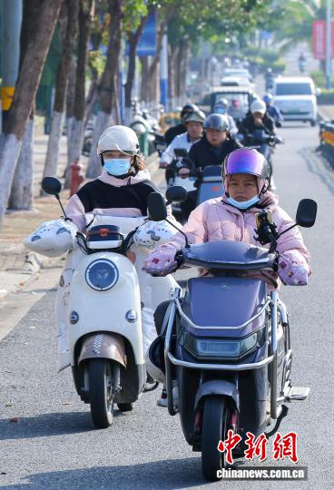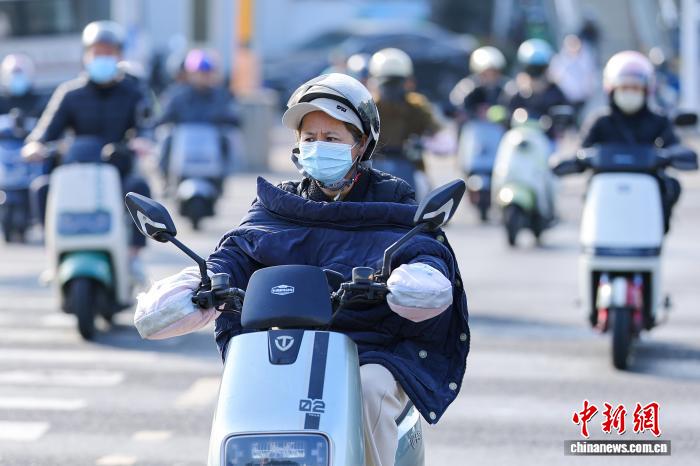1月7日,海北海心,市平易近脱冬衣出止。中新社记者 骆云飞 摄